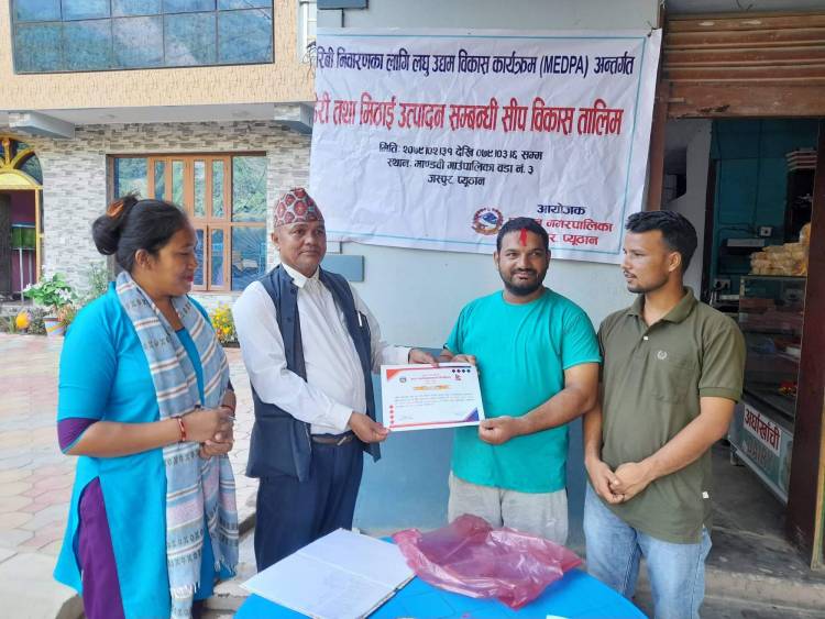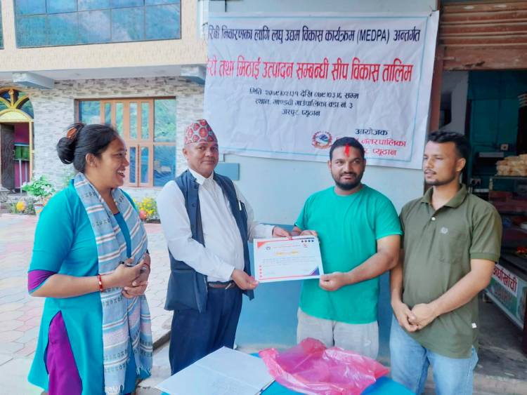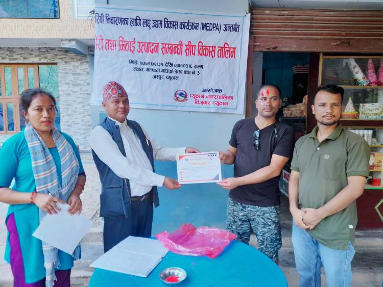 गरिबी निबारणका लागि लघु उद्यम बिकास कार्यक्रम अन्तर्गत प्युठान नगरपालिकाले तालिमको आयोजना गरेको हो । सो तालिममा मसला पनिर, पनिर, केक ,रसबरि पुस्टकारी बनाउन सिकाइएको थियो।अर्घाखाँची डेरि उद्योग का संचालक चन्द्रमणि सुबेदिले तालिममा सहजीकरण गर्नुभएको थियो । समापन कार्यक्रममा प्युठान नगरपालिकाका आर्थिक बिकास अधिकृत लेख बहादुर बिष्टले सहभागीहरुलाई प्रमाणपत्र वितरण गर्नुभएको थियो।