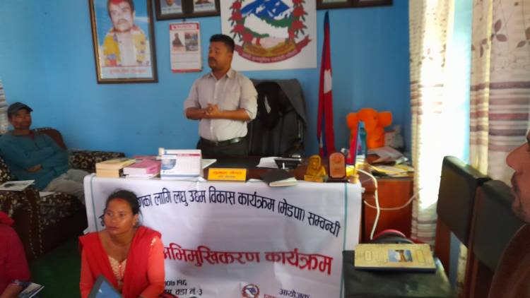 सीता बि.क प्युठान,गरिबी निवारणको लागि लघु उद्यम विकास (मेड्पा) कार्यक्रम सम्बन्धी अभिमुखिकरण कार्यक्रम सम्पन्न भएको छ । स्थानीय जनप्रतिनिधि र सरोकारवाला नागरिकहरुलाई कार्यक्रमबारे जानकारी दिने उद्देश्यले उक्त कार्यक्रम आयोजना गरिएको हो ।