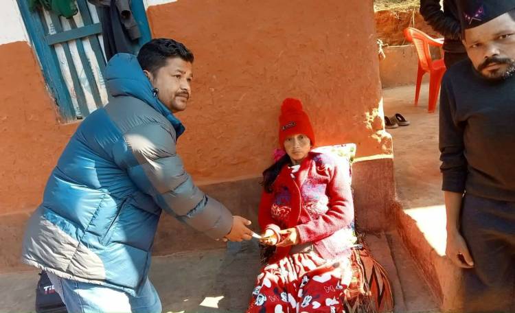 तस्बिर: दुर्घटना पर्नुभएकी शान्ता सुनारलाई नगद प्रदान गर्दै प्युठान नगरपालिकाका नगर प्रबक्ता सुमन श्रेष्ठ