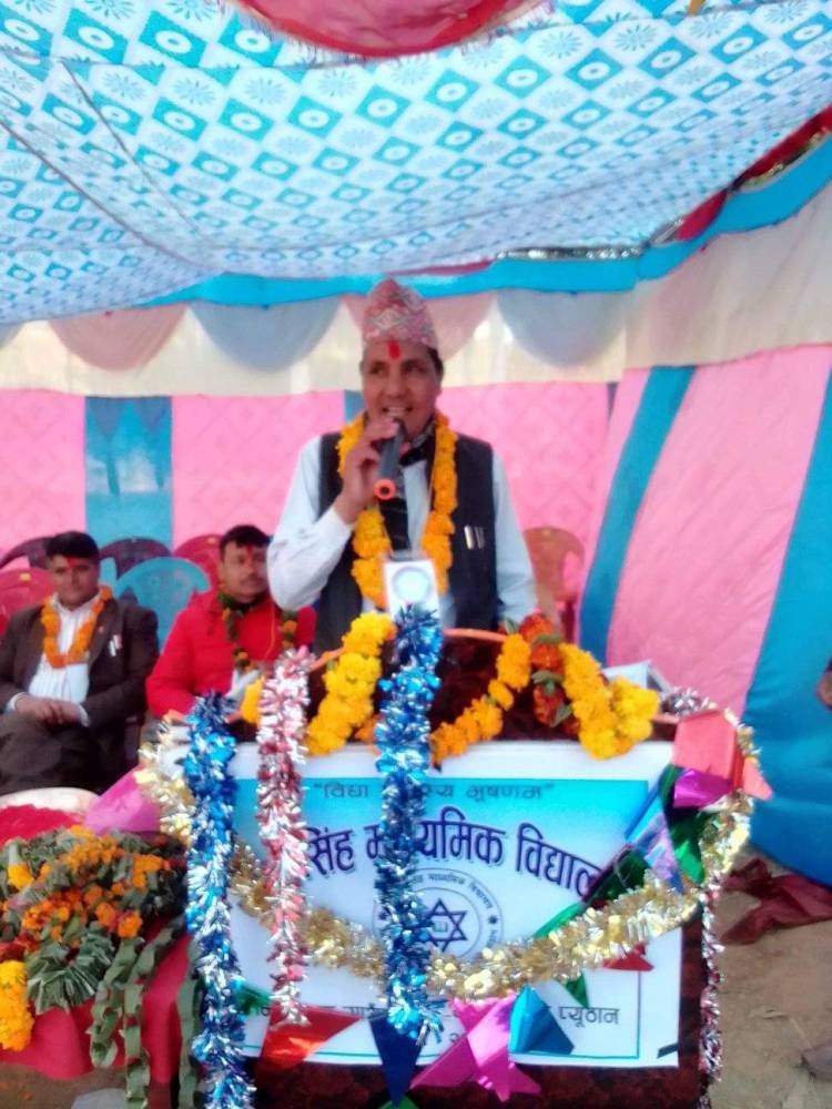 कार्यक्रममा विद्यालय ब्यावस्थापन समितिका अध्यक्ष धुर्ब्रराज खनालको अध्यक्षता, जिल्ला समन्वय समिति प्युठानका प्रमुख धरम बहादुर जि.सी. को प्रमुख आतिथ्यता , झिमरुक गाउँपालिकाका प्रमुख प्रसासकिय अधिकृत सुवास रिजाल, र झिमरुक गाउँपालिकाको युवा तथा खेलकुद साखा प्रमुख मोहन बि.सी. को विशेष आतिथ्यता रहेको कार्यक्रममा झिमरुक गाउँपालिका वार्ड न ५ का वडा अध्यक्ष ददिराम पोख्रेल , झिमरुक गाउँपालिकाका पालिका सदस्य चोप बहादुर बि.क.वार्ड न १ का वडा सदस्यहरु क्रमशः शंकर पोख्रेल,प्रतिमान पुन गीता सुनार , यमुना जिएम र छिमेकी विद्यालयका प्रधानध्यापक साथै शिक्षक प्रतिनिधि र,अभिभावक र चन्दादाताहरु उपस्थित रहेको कार्यक्रममा शिक्षक हरि रायमाझीको स्वागत मन्तव्य बाट सुरु भएको कार्यक्रमको संचालन शिक्षक सुर्य जि एम ले गर्नुभएको थियो।