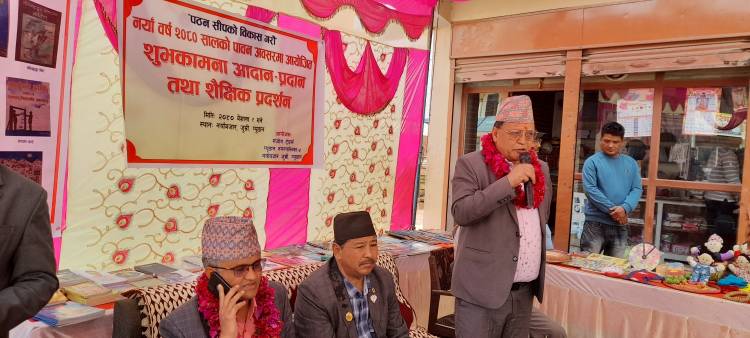 प्युठान, बिगतदेखी नयाँ बजार जुम्रीमा सन्चालरत सन्जोग ट्रेडर्सले नयाँ बर्ष २०८० को अवसर पारेर पठन संस्कृतिको विकास गर्ने उद्देश्यले पुस्तक प्रदर्शनी गरेको छ।