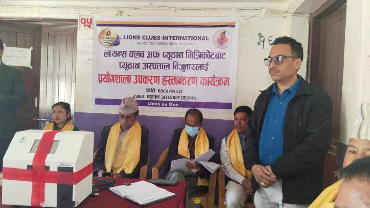 प्युठान अस्पतालको स्वास्थ सेवालाई थप मद्दत पुर्याउने उदेश्यले लायन्स क्लव अफ प्यूठान भित्रिकोटबाट प्रयोशाला उपकरण हस्तान्तरण गरिएको कक्षपतिको भनाई छ।