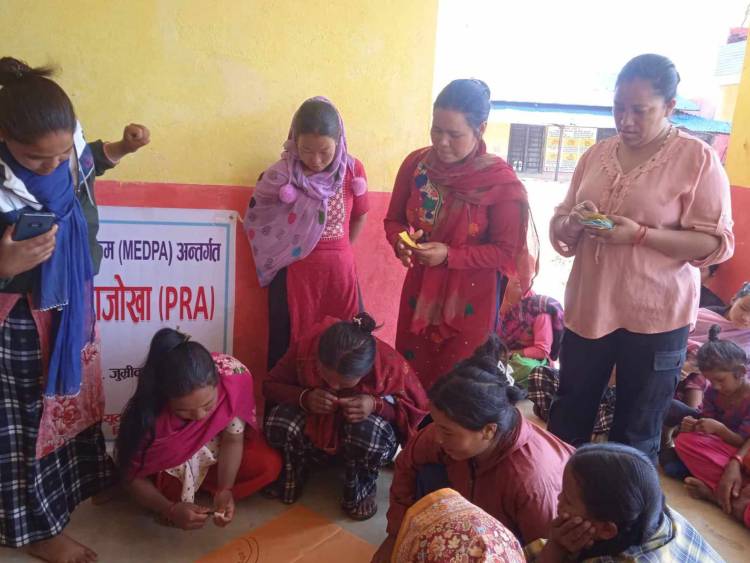 तस्बिर : सहभागितात्मक ग्रामिण लेखाजोखा (PRA) मा सहभागी हुँदै प्युठान नगरपालिका वडा नम्बर ५ जुम्रीकाडाका महिलाहरु