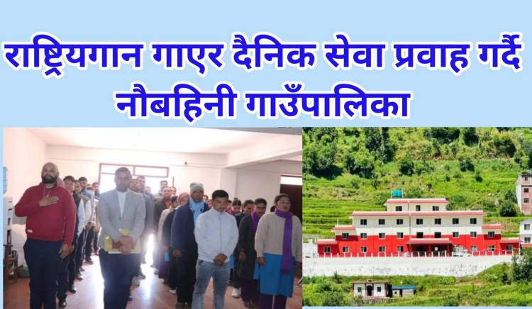 प्युठान,नौबहिनी गाउँपालिकाले कार्यालयको काम सुरु गर्नु अघि राष्ट्रिय गान गाउने कार्यको सुरुवात गरेको छ।