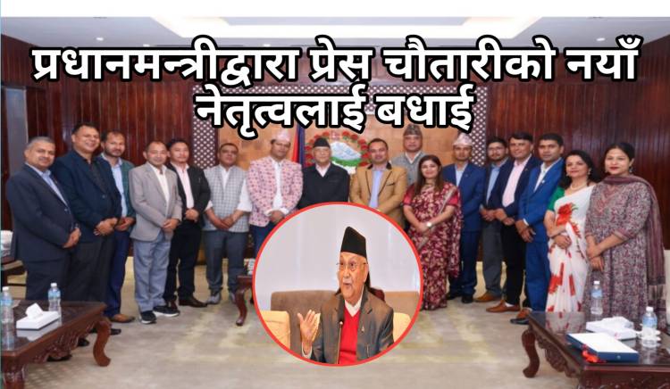 काठमाडौँ,प्रधानमन्त्री केपी शर्मा ओलीले प्रेस चौतारी नेपालको नवनिर्वाचित नेतृत्वलाई बधाई तथा शुुभकामना दिनुुभएको छ।