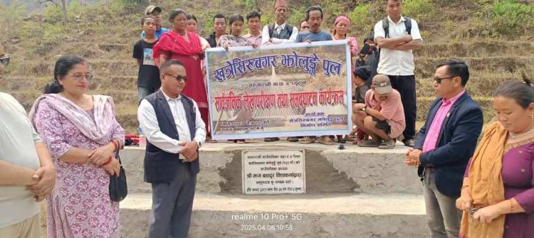 गाउँपालिकाका अध्यक्ष झग बहादुर बिश्वकर्माले मंगलबार एक कार्यक्रमका बीच रिवन काटेर पुल उद्घाटन गर्दै पुलको उपयोग र संरक्षणमा स्थानीय उपभोक्ता जागरुक बन्नुपर्ने बताउनुभयो।१ सय २० मीटर लम्बाइको उक्त पुल निर्माण पश्चात यस क्षेत्रका करिब एक हजार जनसंख्या लाभान्वित हुने अध्यक्ष बिश्वकर्माले बताउनुभयो।