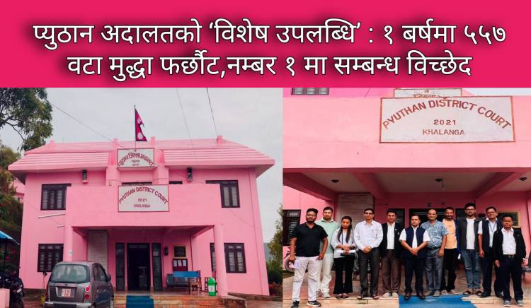 प्युठान,जिल्ला अदालत प्युठानले पछिल्लो एक वर्षमा ५५७ वटा मुद्धा फर्छौट गरेको छ।