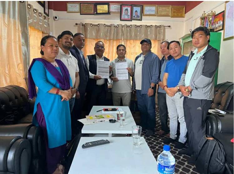 तस्बिर : नेपाल स्वास्थ्यका लागि पानी(नेवा) सस्था र सरूमारानी गाउँपालिकामा बिच सम्झौतामा गरिएको हस्ताक्षर पश्चात् लिएको तस्बिर