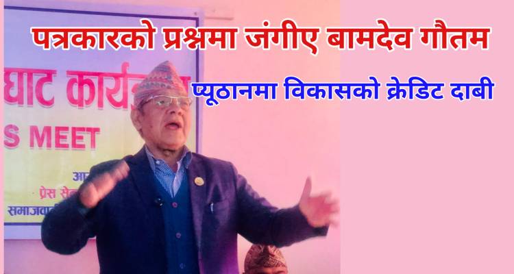 प्यूठान,नेपाल कम्युनिष्ट पार्टिका नेता तथा पूर्व उपप्रधानमन्त्री बामदेव गौतम प्यूठान आएपछि आफ्नो कार्यकालमा जिल्लामा भएका विकास परियोजनाबारे पत्रकारहरूले प्रश्न सोध्दा आक्रोशित भएका छन्।उनले स्पष्ट रूपमा दाबी गरे कि उनको कार्यकालमा प्यूठानमा भएको विकास न पहिले भएको थियो,न पछि भएको छ।