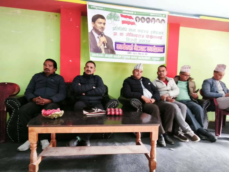 चुनावी कार्यक्रम अन्तर्गत पोखरेलले आज प्युठान नगरपालिका–७ का अगुवा कार्यकर्तासँग भेटघाट गर्नुभयो। भेटघाटका क्रममा उहाँले विकास,रोजगारी र युवामैत्री नीतिलाई आफ्नो चुनावी एजेन्डाको केन्द्रमा राख्नुभएको बताउनुभयो। राष्ट्रिय योजना आयोगको उपाध्यक्षका रूपमा कार्यरत रहँदा सुरु भएका बहुप्रतिष्ठित राष्ट्रिय आयोजनाहरूको प्रभावकारी कार्यान्वयन, समयानुकूल कानुन निर्माण र युवालाई व्यावसायिक तालिमसँगै रोजगारीमा जोड्ने विषय उहाँका मुख्य प्रतिबद्धतामध्ये छन्।