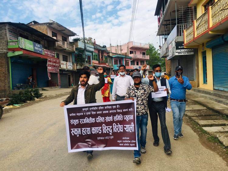 संयुक्त राजनीति दलित संघर्ष समिती प्युठानले निष्पक्ष छानबिनको माग गर्दै प्युठानको बिजुवारमा विरोध प्रदर्शन गरेको हो। गत जेठ १० गते जिल्लाको चौरजहारी ८ सोती घटनामा मारिएका नवराज विकसहितका मृतकका परिवारको न्यायका लागि दलित युवा प्रर्दशनमा उत्रिएका हुन् ।दलित अधिकारकर्मिहरुले मान्छेको ज्यान लिने, घटनाका योजनाकार, संलग्न ब्यक्ति र घटनालाई तोडमोड गर्ने तत्वहरुको अधिकारकर्मिले कडा निन्दा र भर्तसना समेत गरेका छन । उनिहरुले घटनाको सत्यथथ्य छानबिन गरियोस, दलितको रगतमा केसैले राजनीति गर्ने अवस्था नआओस ,यस घटनाका दोषीको कारबाहीले मुलुकमा दलितलाई हुने बिभेदको अन्त्य हुने अवस्था सिर्जना होस प्रेम गर्दा ज्यान लिन पाईदैन जस्ता नारा समेत लगाए।