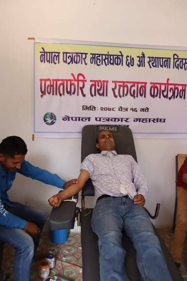 तस्बिर: रक्तदान गर्दै शाखाका अध्यक्ष सन्जय रिजाल
