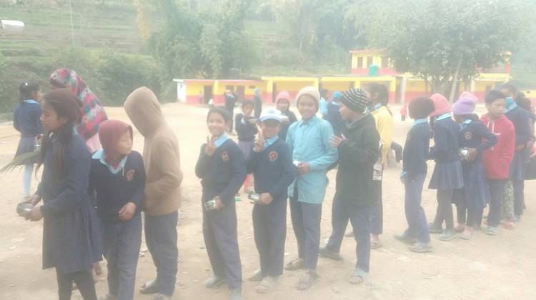 सामुदायिक विद्यालयहरूमा बालबालिकालाई विद्यालयमा टिकाउन र गुणस्तर बृद्धि गर्न सरकारले लिएको दिवाखाजा कार्यक्रम बिध्यालय बाट नियमित कार्यान्वयन ल्याएको बिध्यालयका प्र अ केशु गिरी ले बताउनुभयो ।