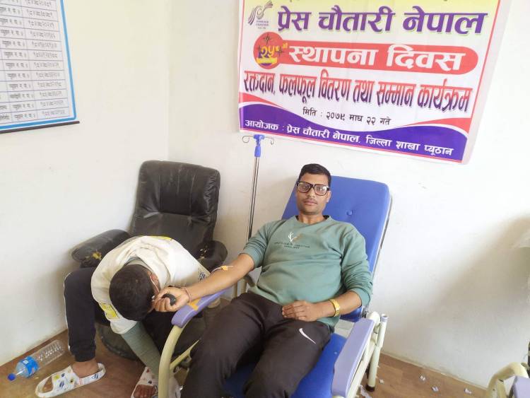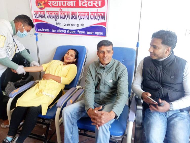 यसैबीच प्रेस चौतारी नेपालका जिल्ला उपाध्यक्ष शिवा रेग्मी,सदस्य हेमन्त पाठकले रक्तदान समेत गरे।