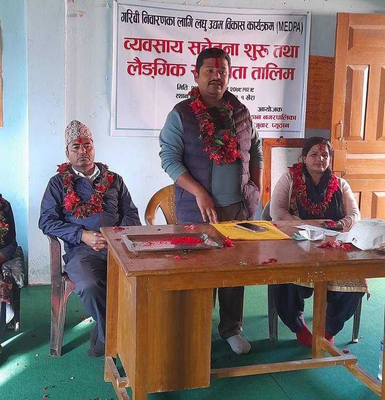 गरिवी निवाराणका लागी लघु उद्यम बिकास कार्यक्रम अन्तर्गत व्यवशाय सचेतना सुरु तथा लैङ्गिक समानता तालिम प्रदान गरिएको नगरपालिकाले जनाएको छ।