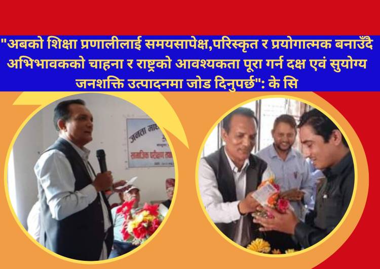 वर्तमान शिक्षा प्रणालीमा रहेका चुनौतीलाई सम्बोधन गर्न शिक्षक,अभिभावक,विद्यार्थी,शैक्षिक संस्था र सरकारले सामूहिक जिम्मेवारी लिनु आवश्यक रहेको के सि को भनाई छ।