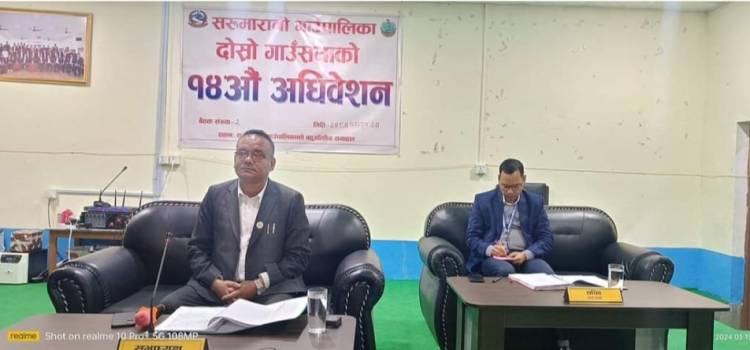 पालिकाको सभाहलमा आज बसेको दोस्रो गाउँ सभाकाे १४ ओैं अधिवेशन अन्तर्गतको दोश्रो वैठकमा उपाध्यक्ष बसन्ता खडकाले नगर प्रहरी सम्वन्धी व्यवस्था गर्न बनेकाे विधेयक,प्रबक्ता एवं पुर्बाधार विकास समिती संयाेजक चिन्त साेमै मगरले खानेपानी तथा सरसफाइ र स्वच्छता सम्वन्धमा व्यवस्था गर्न बनेकाे विधेयक,सामाजिक विकास समिति संयाेजक भिम बहादुर मरसाङ्गीले दलित सशक्तीकरण विधेयक प्रस्तुत गरे।