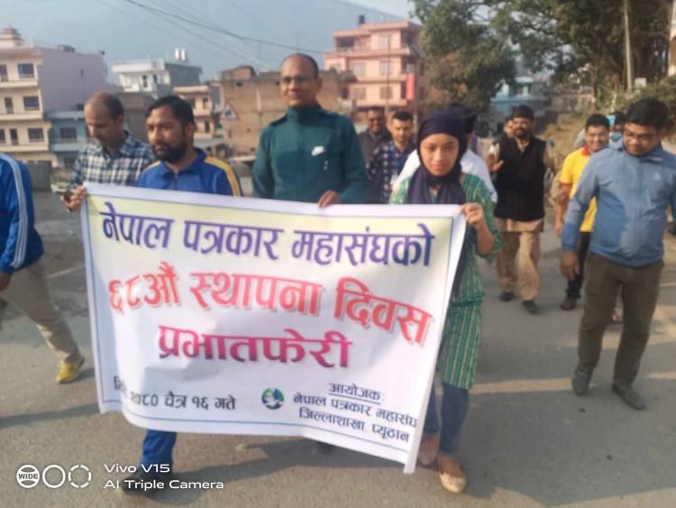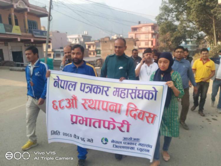 प्युठान,नेपालका पत्रकारहरूको छाता सङ्गठन नेपाल पत्रकार महासघको ६९ औँ वर्षमा प्रवेश गरेको अवसरमा प्युठान शाखाले शुक्रबार विहान प्रभातफेरीको आयोजना गरिएको छ ।
