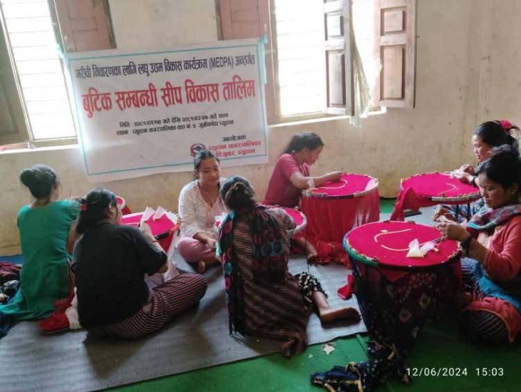 गरीब,विपन्न र सीमान्तकृत समुदायलाई स्वरोजगार बनाउने उद्देश्यले नगरपालिकाले सञ्चालन गरिरहेको गरिबी निवारणका लागि लघु उद्यम बिकास कार्यक्रम(मेड्पा)अन्तर्गत विभिन्न सीपमा आधारित तालिमहरु सञ्चालन गरी आत्मनिर्भर बन्न चाहने सर्वसाधारणलाई तालिम प्रदान गरिरहेको छ।निःशुल्क रुपमा पाइने उक्त तालिमले सीप तथा क्षमता अभिवृद्धि हुने र यसबाट उद्यमी बन्न र आत्मनिर्भर हुनलाई सघाउ पुग्ने बुझेपछि अधिकांश महिला सीप सिक्न आकर्षित बन्दै गएका छन्।