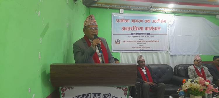 उद्योग,वाणिज्य तथा उपभोक्ता हित संरक्षण निर्देशनालय सिद्धार्थनगर,रूपन्देहीको आयोजना तथा घरेलु तथा साना उद्योग कार्यालय सहजीकरणमा उपभोक्ता जागरण तथा उद्यमीसँग अन्तरक्रिया कार्यक्रममा बोल्दै उहाँले सरकारले लिएको समृद्ध नेपाल र सुखी नेपालीको सपना साकार पार्नका लागि मुलुकमा सञ्चालित लघु,घरेलु तथा साना उद्योगहरुको प्रवर्धन र विकास अपरिहार्य भएकोमा जोड दिनुभयो।