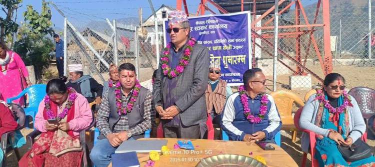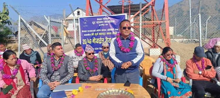 प्युठानको सरुमारानी गाउँपालिका –५, सौराकोटमा जिएसएम सेवाको नयाँ बिटिएस टावर उद्घाटन गर्दै