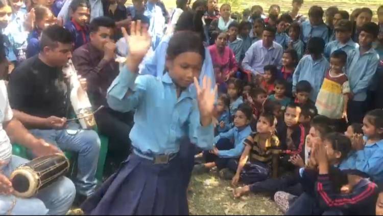 सारङगीको र्याईर्याई र सुरिलो स्वर सुन्न बिध्यार्थिहरु चटकेले देखाईरहेको चटक हेर्नझै गोलबद्ध भएर गीतको धुन र भाका सुनिरहेका थिए।गन्दर्भहरुले गितको माध्यमबाट चेतनामूलक शन्देस छरिरहदा बालबालिका छमछ्मी नाच्न समेत पछाडी परेनन्।सांस्कृतिक कार्यक्रममा बिध्यार्थिहरु कतिवेला निकै भावुक त कतिवेला निकै हर्षित हुने गरेका थिए।