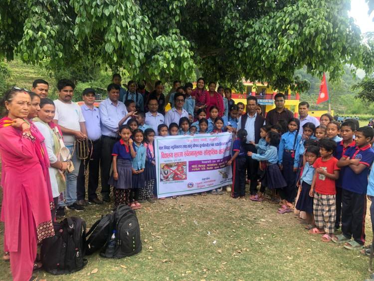 मध्यान्तर समय अर्थात(बालबालिकाको खाजा समय),गृष्म ऋतुको रापिलो घामले बिध्यालयको प्राङ्गणमा रहेको स्वामिको बोटको छहारीमा सुस्ताउँदै बसेका बिध्यार्थिरुलाई गन्दर्भ बिकास समाज प्युठानको टिमले गाएका माथिका गीत हरफहरुले मन्त्रमुग्ध बनाउँदै थिए।