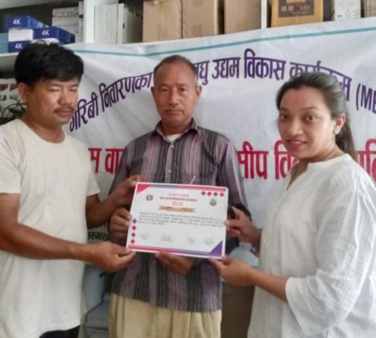 तस्बिर :तालिम प्रशिक्षार्थीलाई प्रमाणपत्र पत्र प्रदान गर्दै उद्यम बिकास सहकर्ता सीता बि.क