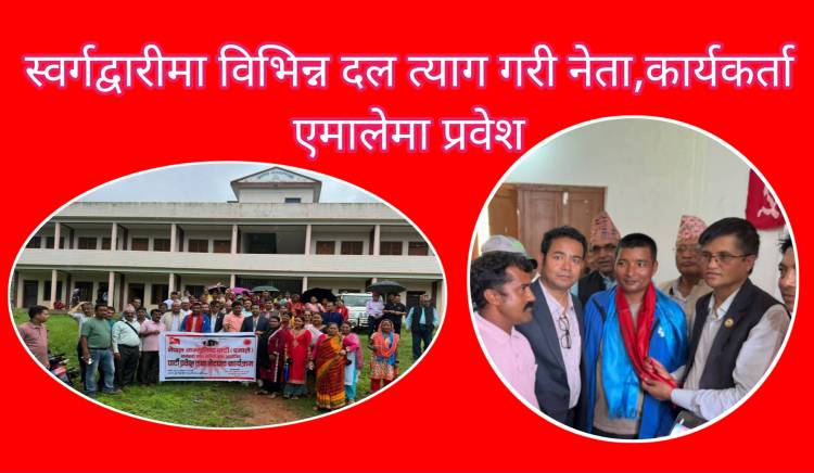नेकपा एमाले स्वर्गद्वारी नगर कमिटी अध्यक्ष भरत राउतको अध्यक्षतामा भएको पार्टी प्रवेश कार्यक्रममा नेकपा एमाले लुम्बिनी प्रदेश कमिटी सदस्य तुल्सीराम शर्मा,लुम्बिनी प्रदेश कमिटी सदस्य नेत्र बहादुर रोकाय,जिल्ला कमिटी अध्यक्ष बिजयबिराज बिष्ट,सचिव इन्द्रमणी पोख्रेल उप-सचिब हिरामणी भण्डारी,उप-सचिब इश्वरा आचार्य लगायतको उपस्थिति रहेको कार्यक्रमको संचालन नगर सचिव खिमप्रसाद पार्धेले गर्नुभएको थियोे।