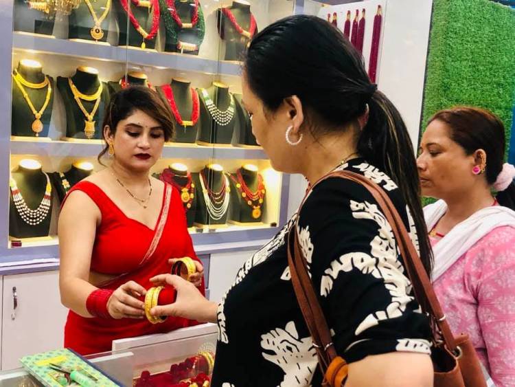 तस्बिर :महिलाहरुको महान चार्ड हरितालिका तिजको अबसरमा विशेष छुट सहित उहाँहरुको रोजाई र चाहना अनुसार आधुनिक डिजाइनका गहना बिक्री तथा साटफेर समेत गर्दै आएका छौँ।