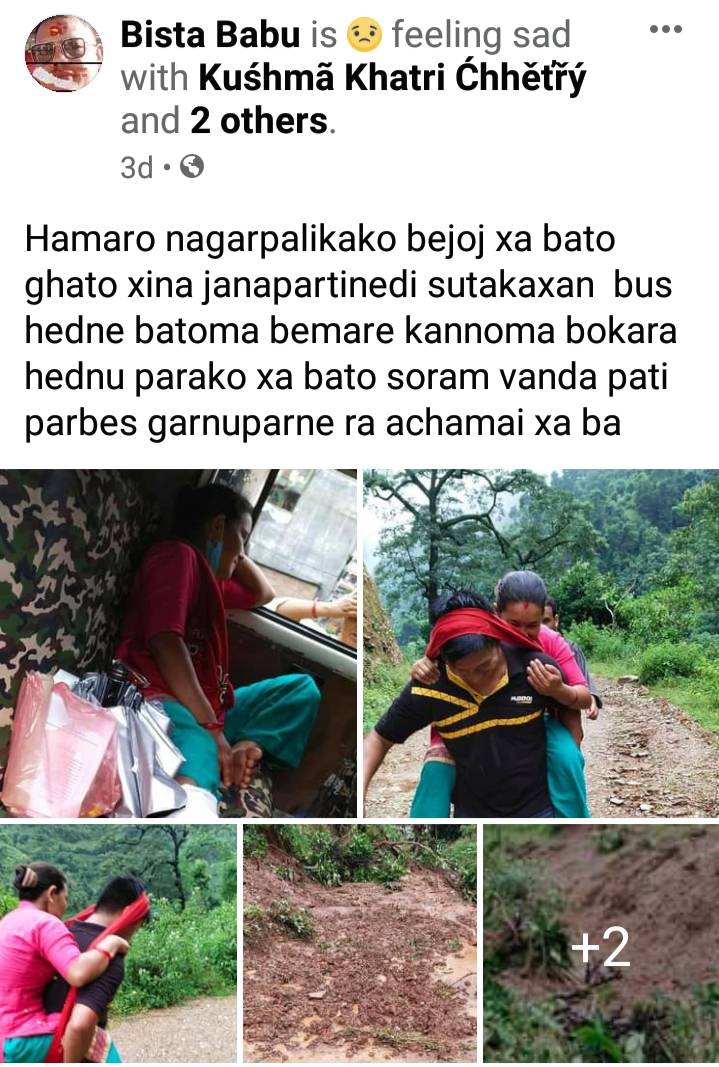 यस्ता प्राकृतिक बिपत्ति लाई समेत ख्याल गरि आगामी दिनमा अब हरेक स्थानीय तहले कुन सडकलाई कसरी अगाडि बढाउने भन्नेबारेमा पुर्ब अनुमान गरि गाउँ वा नगरसभाबाटै नीति पास गरेर नालीसहितको पक्की सडक निर्माण गर्नेबारे गुरुयोजना मार्फत काम अगाडि बढाउनु पर्ने जनता नेरा प्रा बि का प्रध्यानाध्यापक बिकास के सि ले बताउनुभयो।